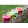 The shape of this new wafter: flat and wide, allows it to settle better on the bottom over the pellet or groundbait, making it easier to mould into the method. It can be easily threaded onto a needle or a bait, and its body shape allows it to move similarly to a natural bait.