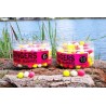 Banded Wafters: 6 and 10 mm pellets in mixed colors—white, red, and yellow—in 100g packs. These pellets feature a semi-buoyant compound that, rather than resting statically on the bottom, tends to float when fish move, causing them to move. The result is a hookbait presentation that exhibits natural movement, hence the name "Wafter."