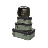 Available in four sizes—122, 126, 213, and 343—Hydro Boxes are both lightweight and durable. Made from waterproof material and welded seams, each model features a double-zip lid for easy access. The lids are made from UV-resistant, colored PVC. The 343 model also includes an internal, zippered mesh pocket on the bottom, ideal for storing items such as baiting needles, hooks, spools of leader, etc.